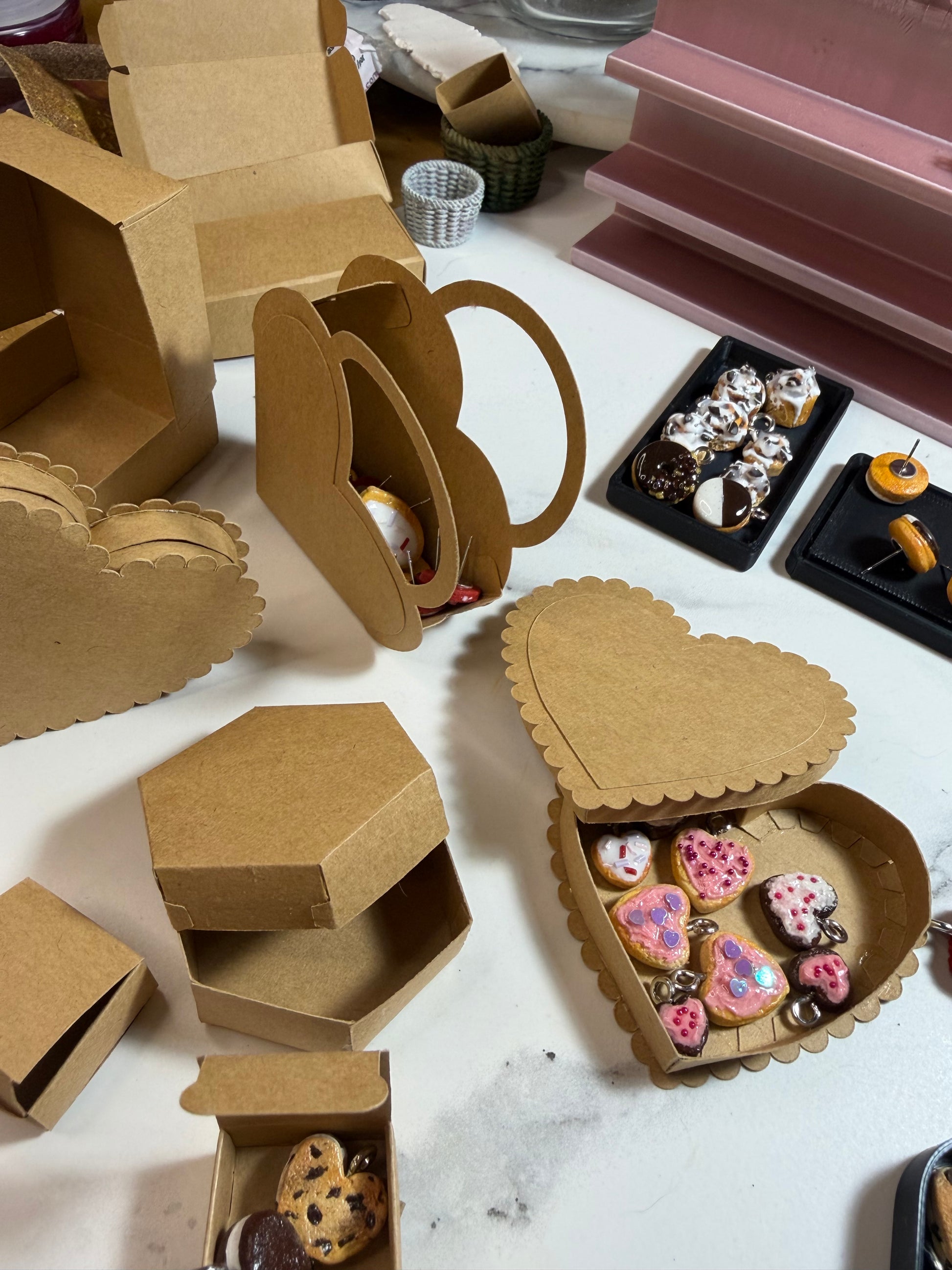 From heart -shaped cookies and ice cream sandwiches to macarons and stud earrings, every piece in this collection is sculpted by hand and finished with care. No two pieces are exactly alike -that’s part of the charm.